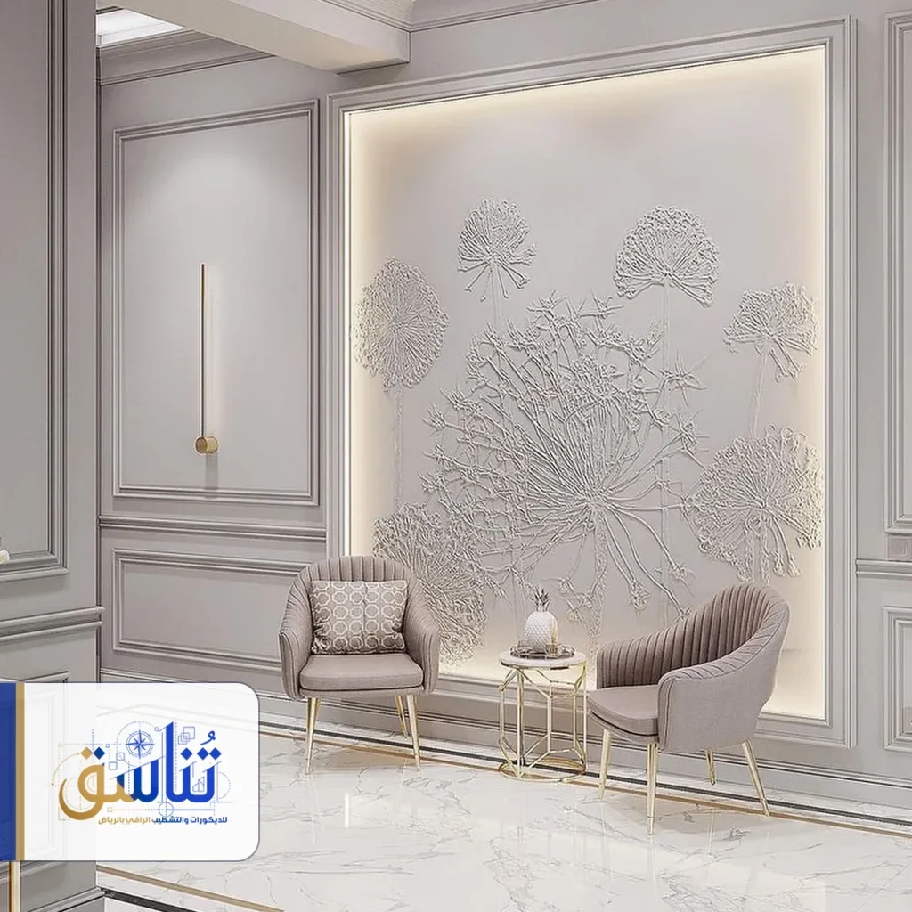توريد وتركيب ورق جدران ثلاثي الأبعاد (3D) أو كوري مقاوم للرطوبة.