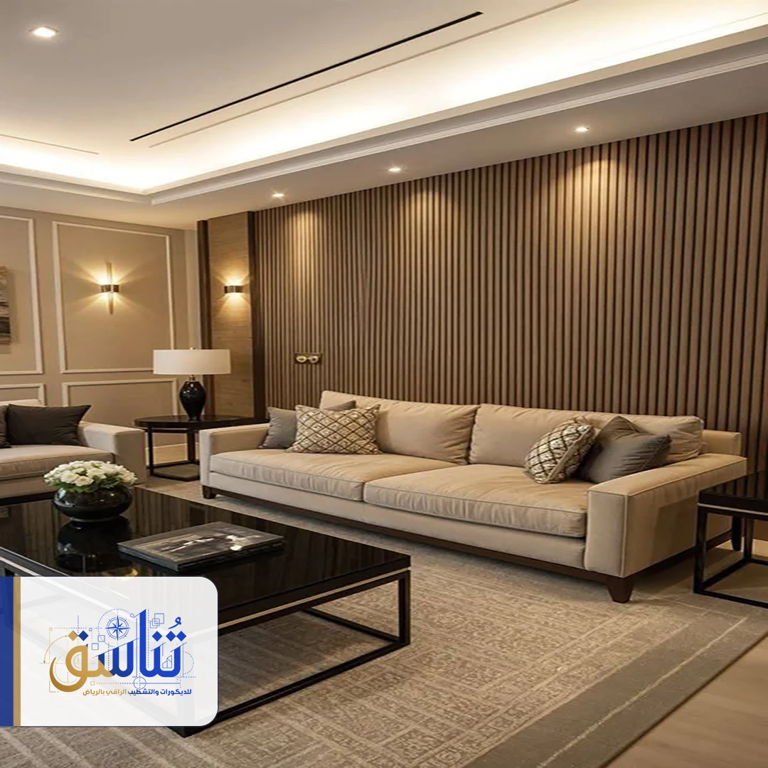 أناقة صالات الاستقبال تكتمل مع بديل الخشب للصالات الذي يوفره موقع تناسق الرياض للديكورات !