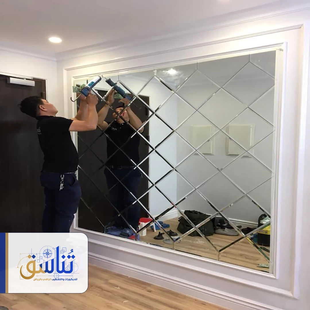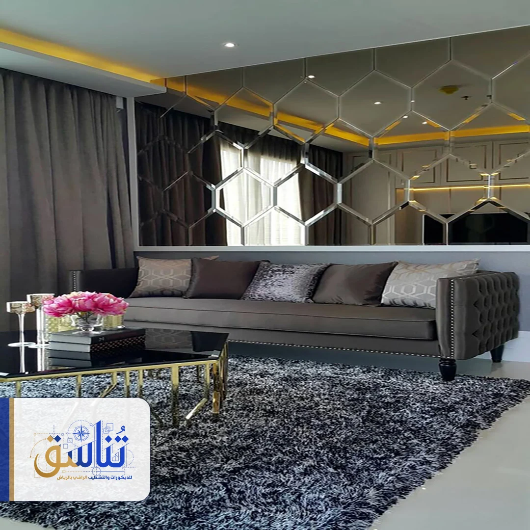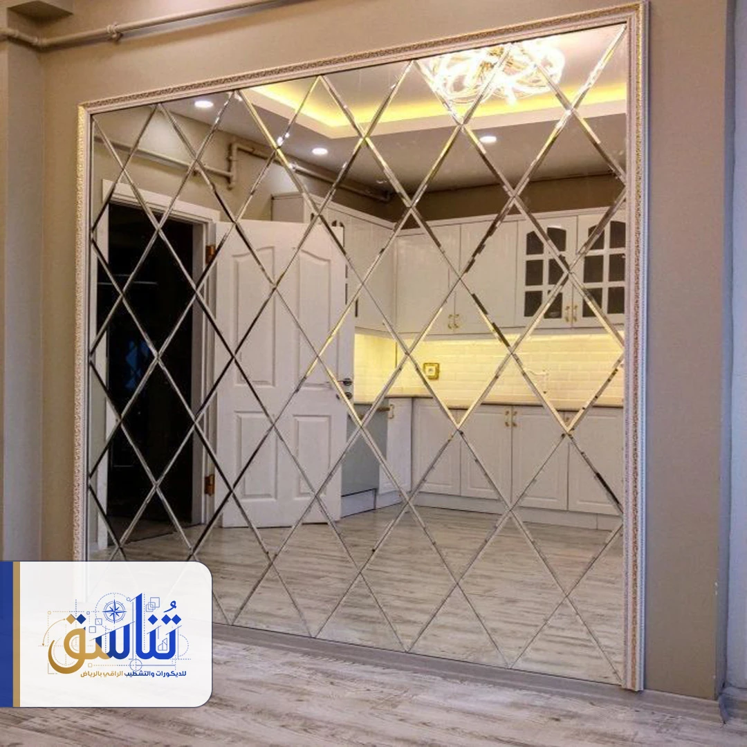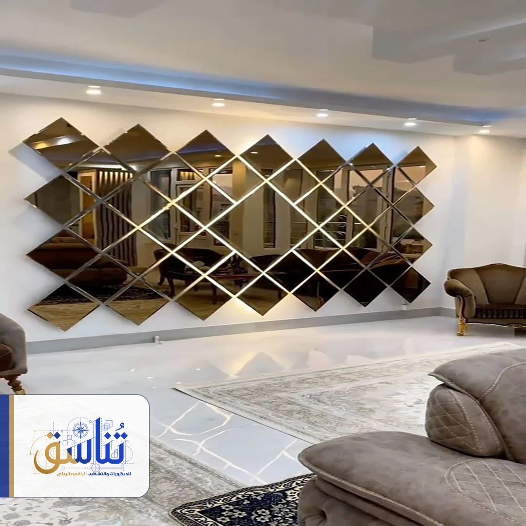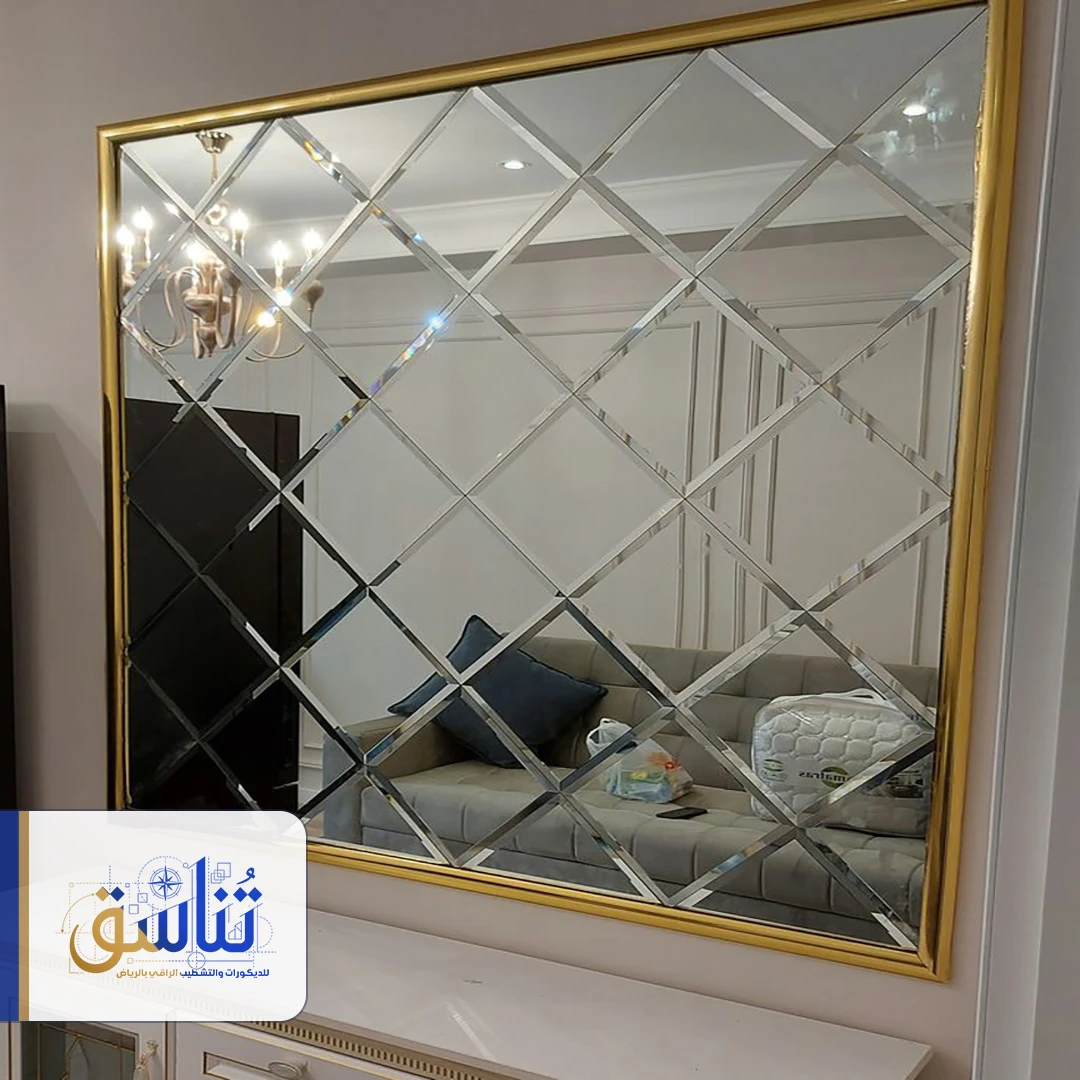 اكتشف هندسة الإبداع على جدرانك مع ديكور مرايا معينات المتوفر في تناسق الرياض للديكورات !